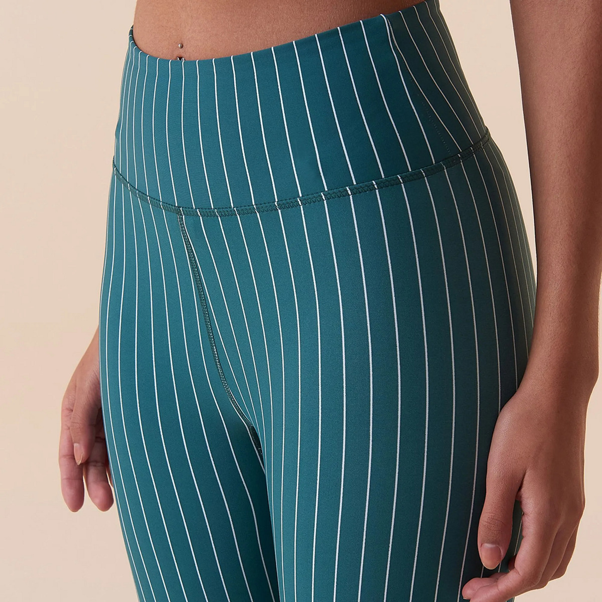 Calza para mujer confeccionados en malla de poliamida elástica. Corte ajustado, cintura alta y costuras planas (sin fricción). Presentan estampado integral de rayas FILA, cinturilla de 10 cm con elástico interno de 0,7 cm, refuerzo en la entrepierna y el logotipo de silicona FILA Linear centrado en la cinturilla trasera. Largo total: 85 cm.