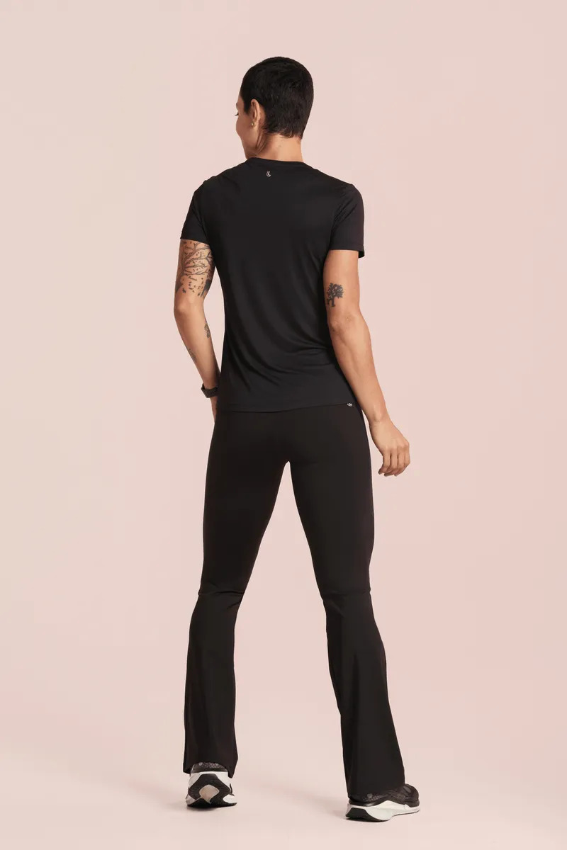 Calza larga de corte recto y ajustado, con un bajo ligeramente más ancho que crea una silueta de bailarina. Cuentan con una cinturilla alta que estiliza la figura y ofrece protección solar UV+50.