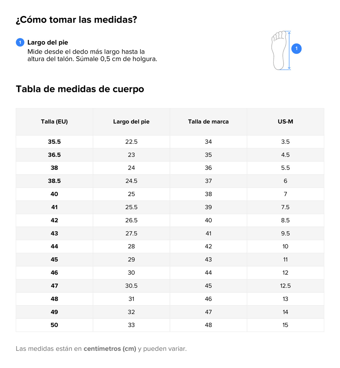 Antes de realizar tu compra, por favor corrobora la guía de talles en centímetros para evitar cambios.