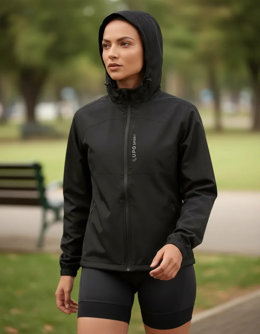 Chaqueta cortavientos ligera para actividades al aire libre. Cuenta con capucha integrada, cordón ajustable y cremallera sellada. Sus detalles reflectantes la hacen versátil para uso casual o para hacer ejercicio.