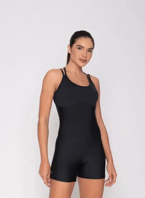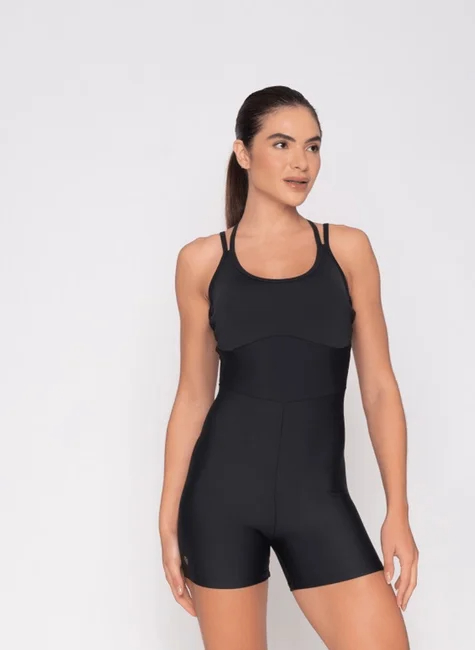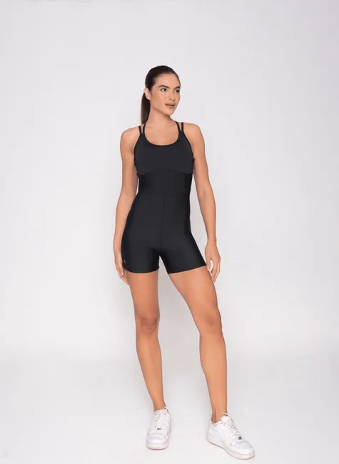 Este mono está diseñado para brindar comodidad y estilo. Su diseño minimalista y ceñido realza con elegancia la silueta femenina. La parte delantera presenta un sencillo escote redondo con tirantes finos que se elevan por encima de los hombros, ofreciendo un look limpio y moderno.