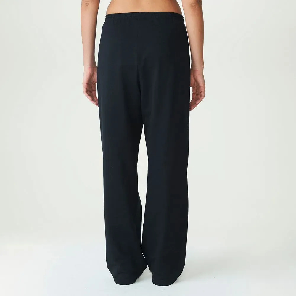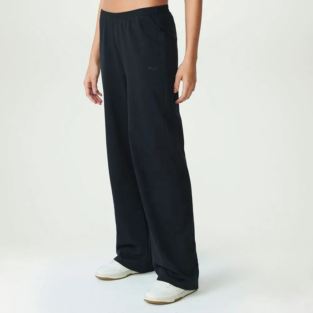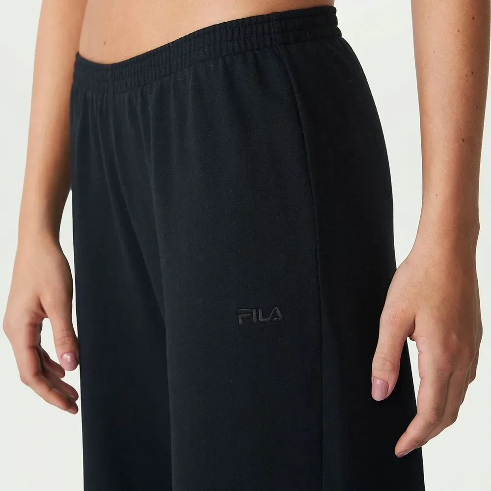 Pantalones anchos para mujer confeccionados en algodón y felpa de poliéster. Con un diseño versátil, básico y atemporal para el día a día, la prenda cuenta con una cinturilla de 5 cm con elástico interior y pespuntes triples. El bajo está rematado con pespuntes dobles. El logotipo de FILA bordado en la pierna izquierda completa el diseño.