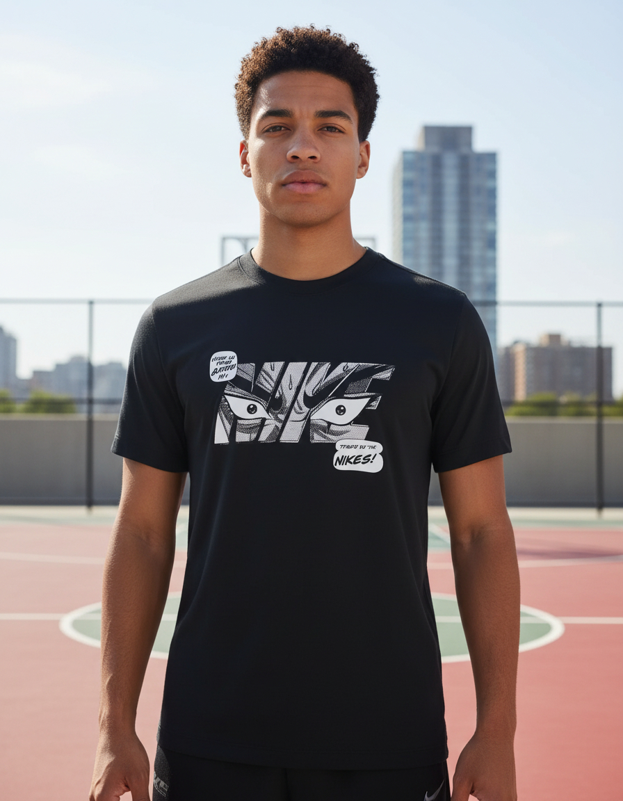 Esta camiseta ligera tiene un corte clásico, ideal para entrenar. La tecnología Nike Dri-FIT absorbe el sudor de la piel para una evaporación más rápida, manteniéndote seco y cómodo.