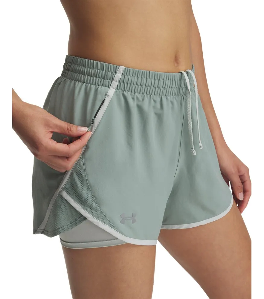 Los shorts exteriores de tejido liso 100 % reciclado son ligeros, cómodos y duraderos. Los shorts interiores de compresión están confeccionados en malla para una cobertura y un soporte óptimos. El material absorbe el sudor y se seca muy rápido.