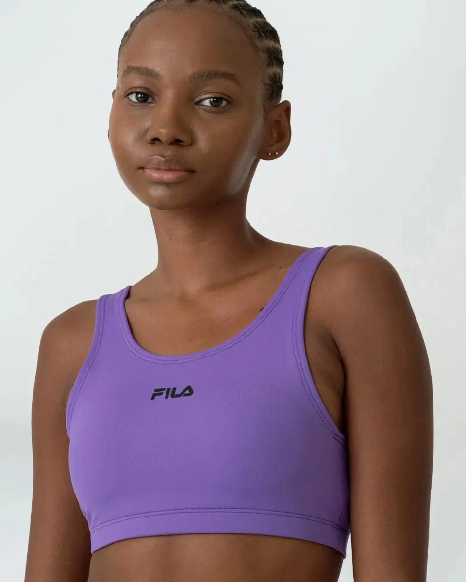 Fila presenta el Top Essential I para mujer, ideal para quienes valoran la comodidad y la libertad durante el entrenamiento y la práctica deportiva. Fabricada en poliamida y elastano, la prenda luce un diseño morado y un logotipo estampado en la parte delantera.